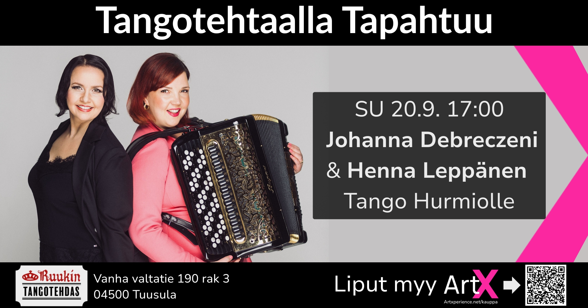 Johanna Debreczeni & Henna Leppänen esittävät tangoja eri puolilta maailmaa Ruukin Tangotehtaalla 20.9.2026!
