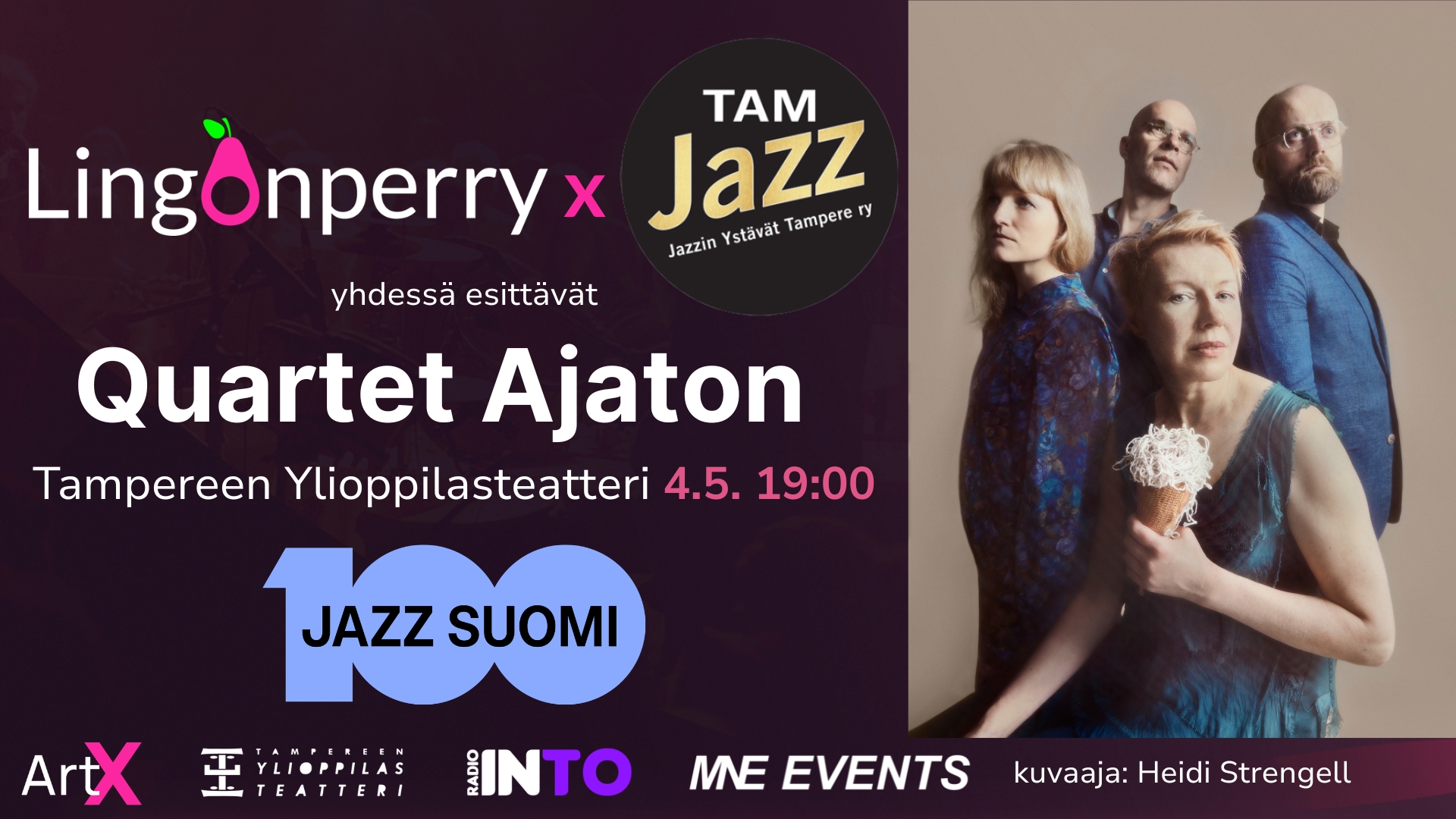 Jazz-konsertti ja -jamit, jotka Lingonperry ja TamJazz järjestävät yhdessä Tampereen Ylioppilasteatterissa 4.5.2026!
